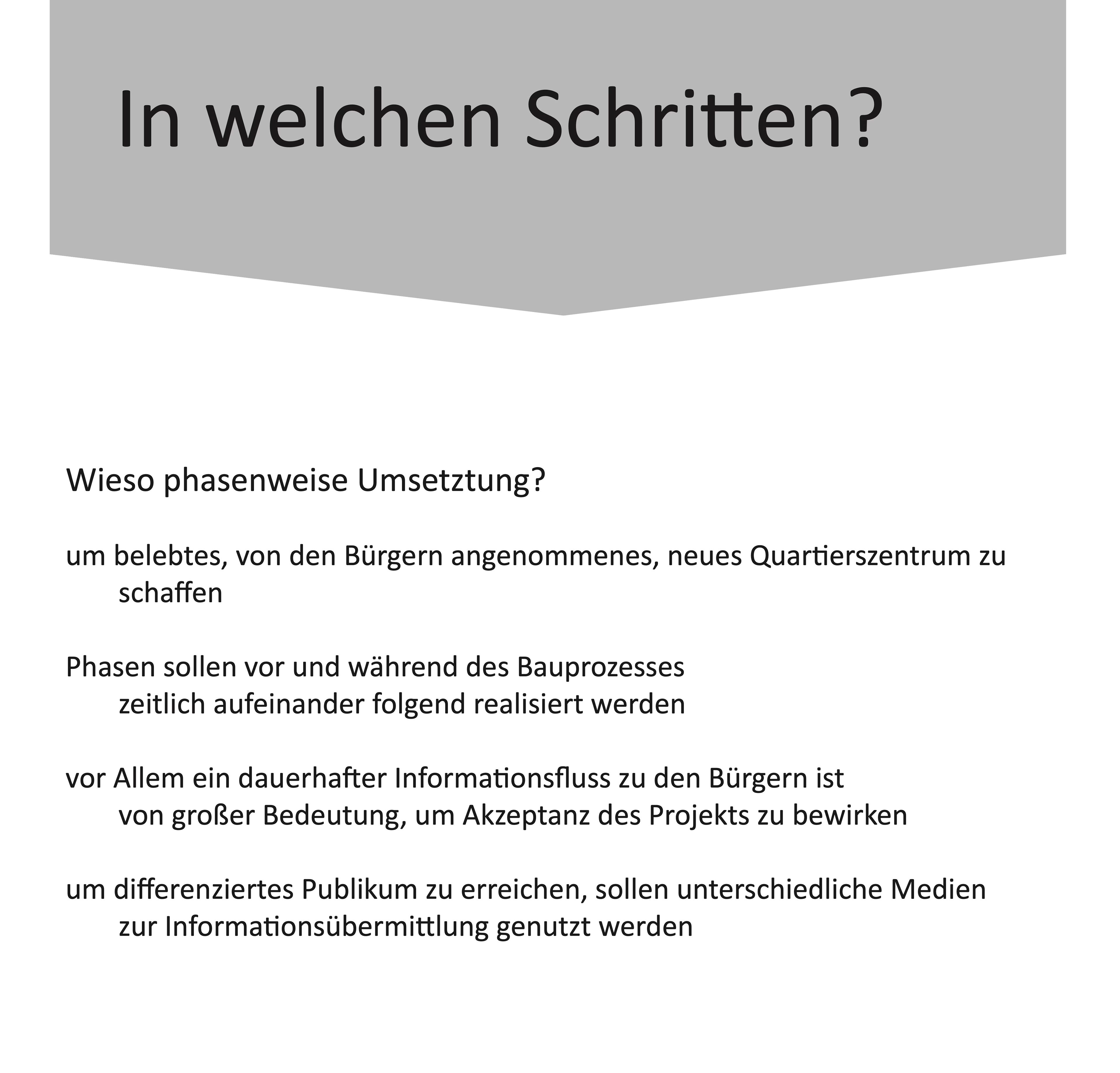 Anhand einer konkreten Planungsaufgabe sollen Sie Zusammenhänge verstehen lernen, Ansätze für Veränderungen herausfinden und Vorschläge zur Entwicklung eines Stadtgebietes erarbeiten. Sie sollen konkret an einem Ort die Stadt wahrnehmen, analysieren und Folgerungen ableiten, diese in Konzepte übersetzen und diskutieren sowie Ihre Überlegungen visualisieren sowie nachvollziehbar erläutern und begründen.