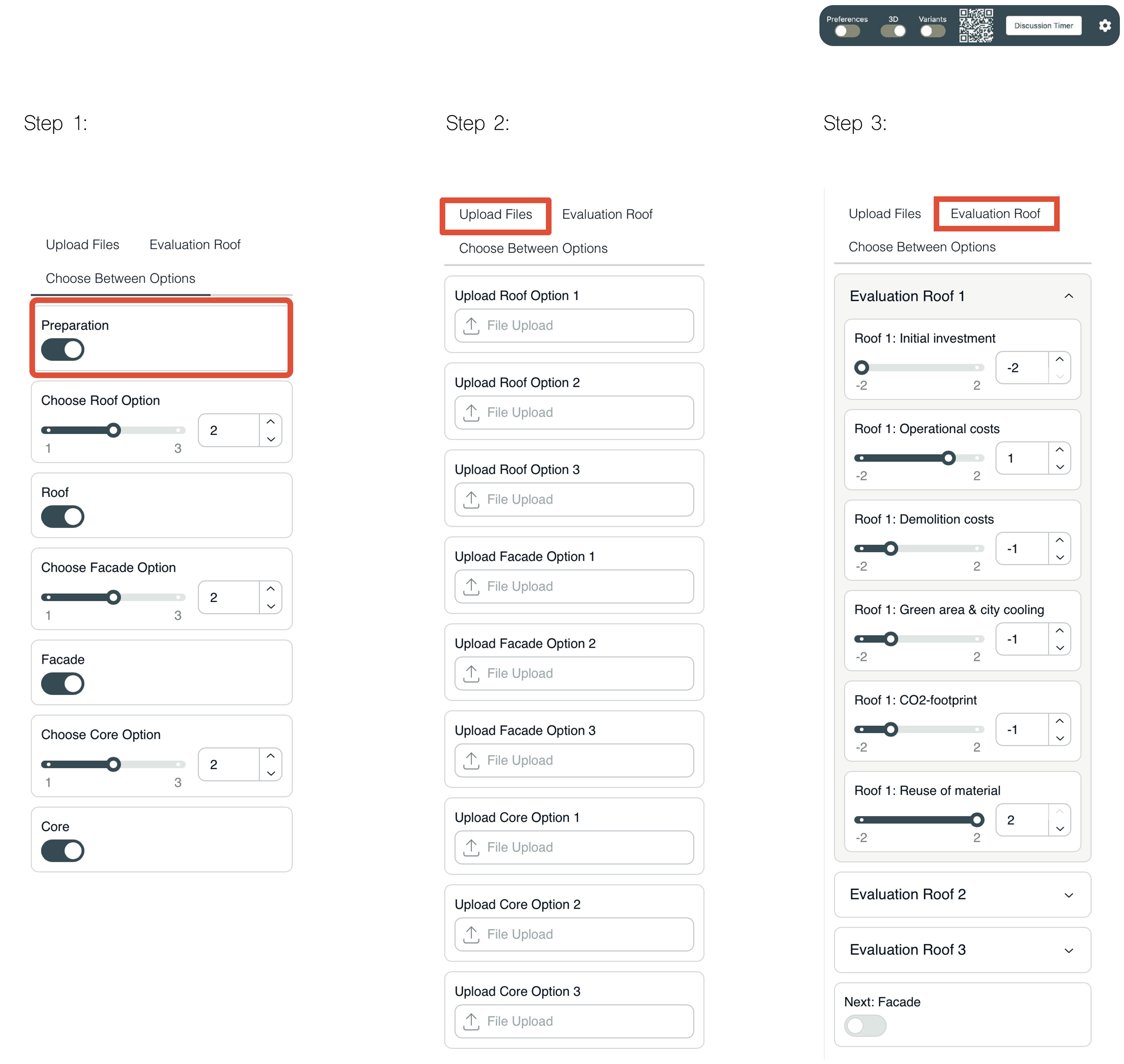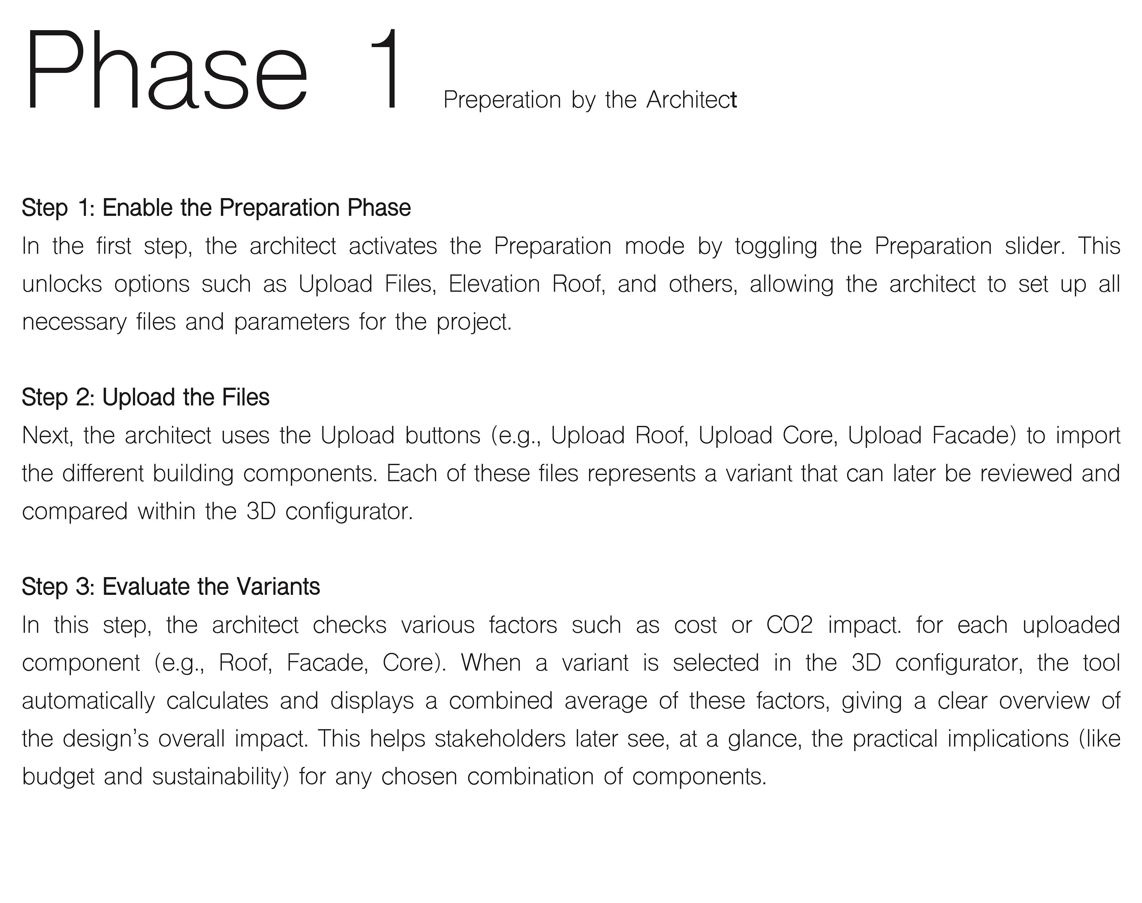 After getting the feedback by two architecture companies, we decided that the tool can only work, if the design of the variants, as well as the evaluation is up to the architect, since he or she is the expert and has to make sure to only present feasible changes that make sense for changing the building .