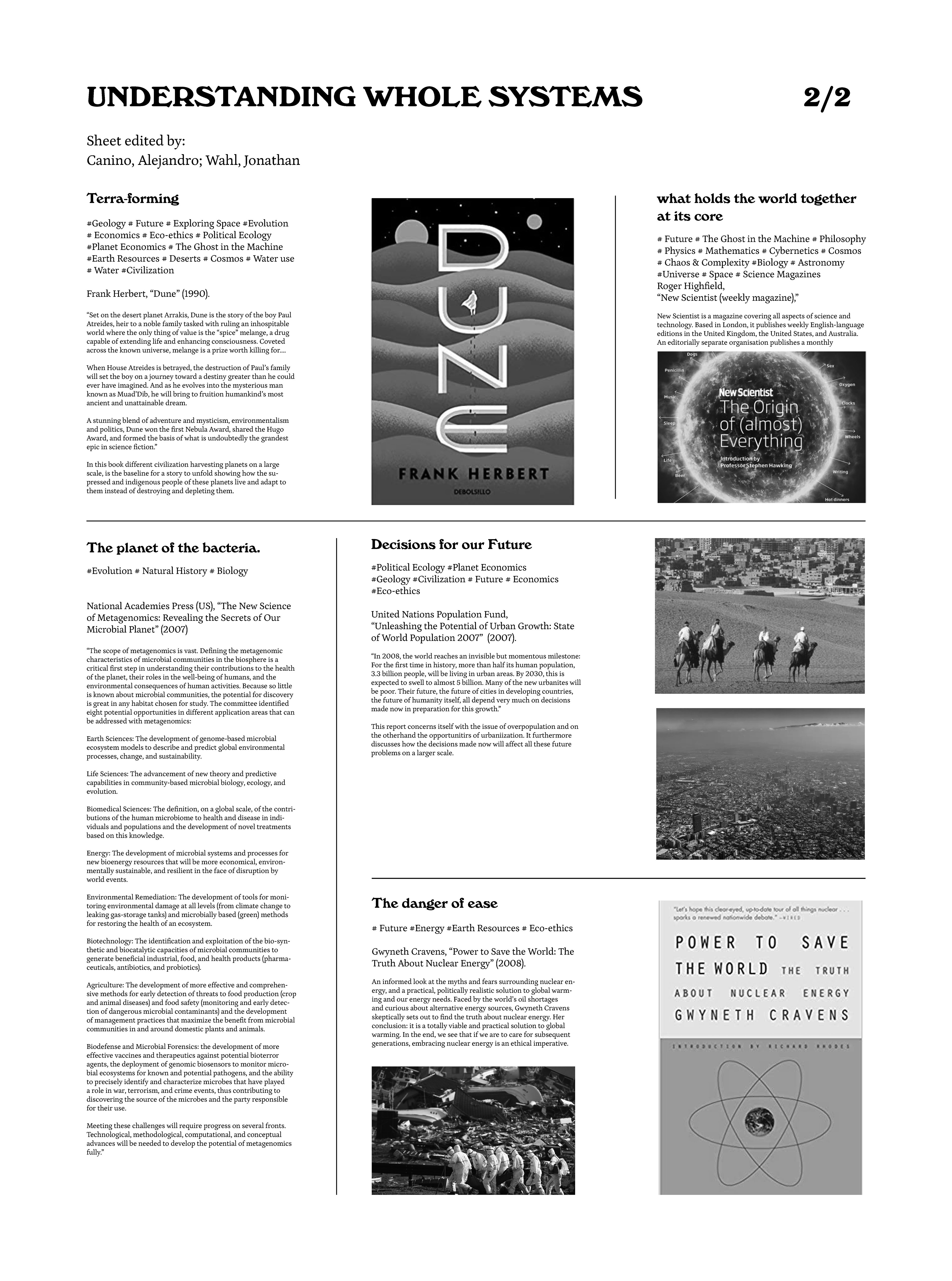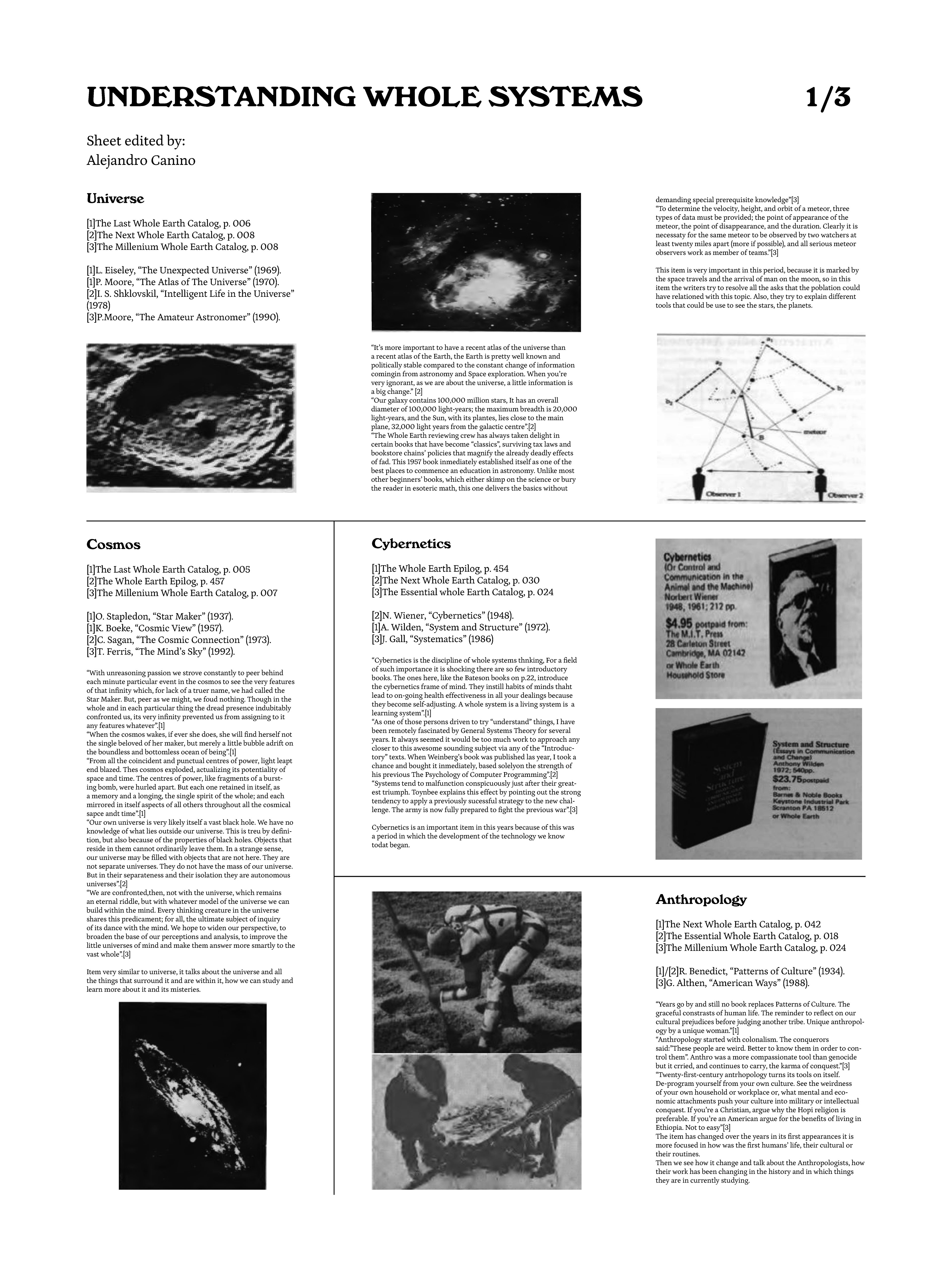 Through exercises in disassembling and reassembling the Whole Earth Catalog, my work aimed to delve deeper into the project of circular knowledge, and how it could inform our understanding of sustainable development goals. The course also featured contributions from scholars with diverse perspectives on encyclopedism, handbooks, and tools. Ultimately, the course aimed to offer a unique and multifaceted exploration of the role of encyclopedism in shaping our understanding of scientific knowledge and its relationship to society.